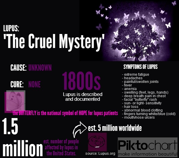 McLean said, “We don’t know what causes lupus or how to cure it [but] many symptoms of lupus mimic those of other illnesses, which makes diagnosis more difficult. Moreover, lupus can affect any organ system of the body, including the heart, kidneys, lungs, blood, joints, and skin.”