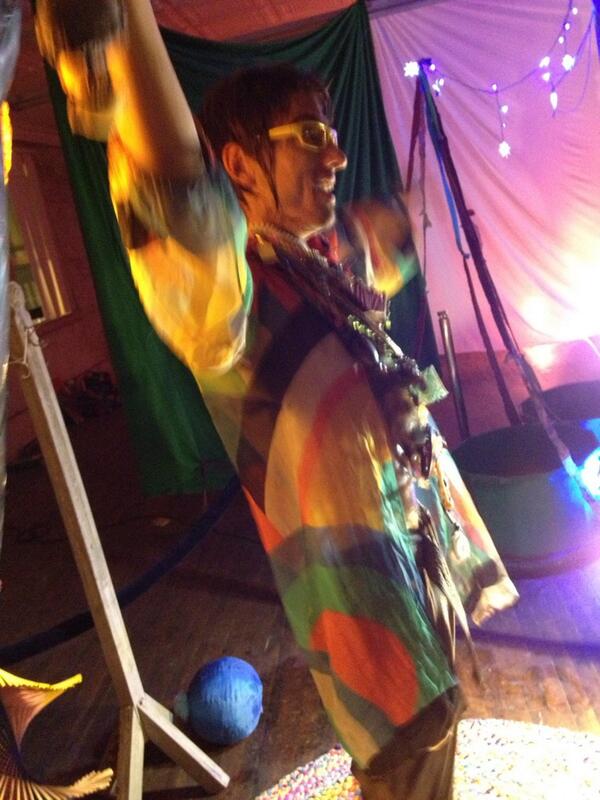 Slowly introduced by ethereal sounds (bells, impressive vocals), the Charm Ape emerged and began his transformation. This performance element added new meaning to the placed sculptures and hanged paintings. Each grouping of art became a part of life, a part of the journey – purpose was in both the chaos and the order.